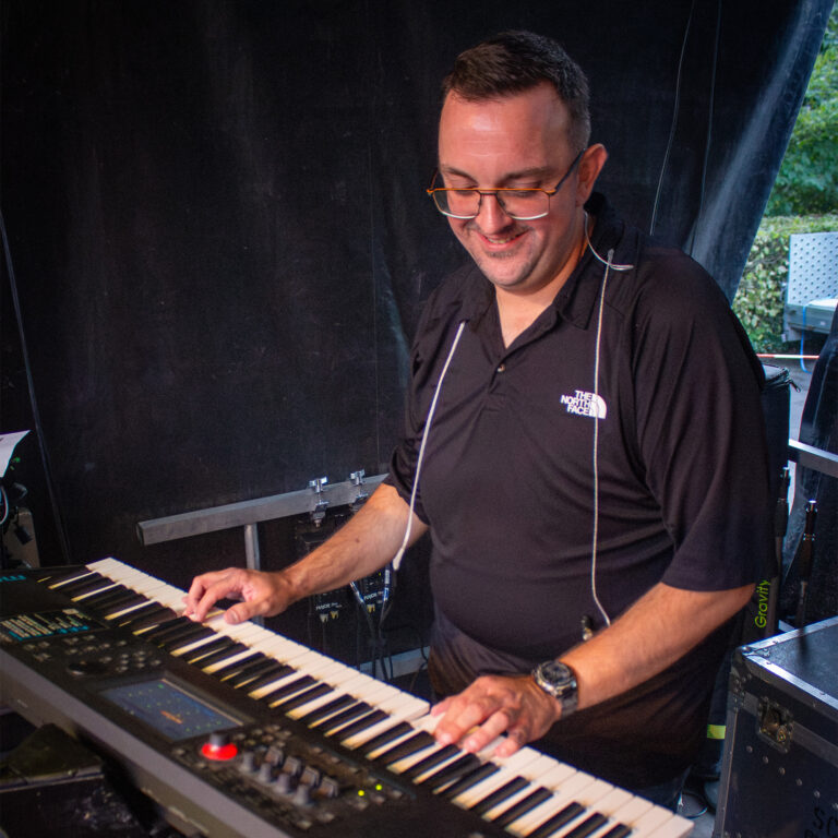 Mit seinem Keyboard zaubert er die Sounds, die unseren Songs das gewisse Etwas verleihen – egal ob fette Orgelklänge, schwebende Flächen oder Solos, die unter die Haut gehen. 🎶🔥